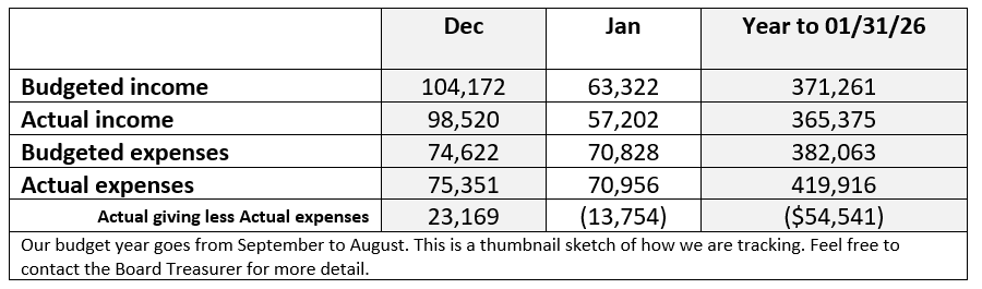 These numbers reflect the General and Missional fund budgets
